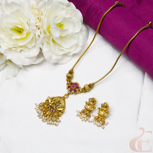 Trending Matte Square Pendant Haram Long Chain Antique Necklace Set with Earrings 108