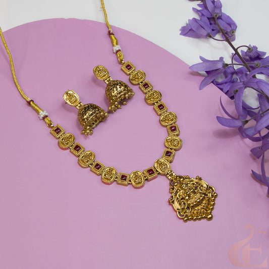 Trending Matte Square Pendant Haram Long Chain Antique Necklace Set with Earrings 108