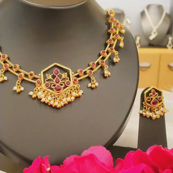 Elegant antique choker necklace with matching earrings, designed for a refined look that's perfect for daily wear.