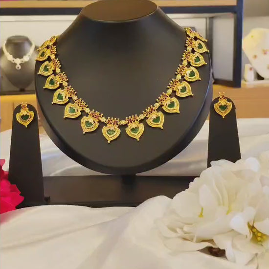 Elegantly crafted traditional Palakka necklace, featuring intricate designs and vibrant colors, perfect for adding a timeless, cultural touch to any occasion.