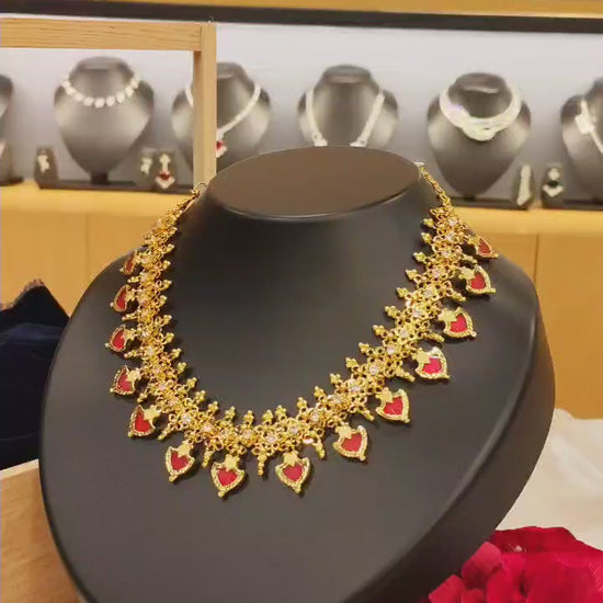 Elegant and timeless, this Traditional Palakka Necklace showcases intricate design and vibrant green accents, perfect for adding a touch of heritage and sophistication to any outfit.